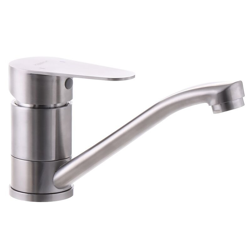 Змішувач для умивальника Dante ASA-004 з нержавіючої сталі виконаний у традиційному для цього типу сантехнічних пристроїв дизайні. Вилив поворотний.
